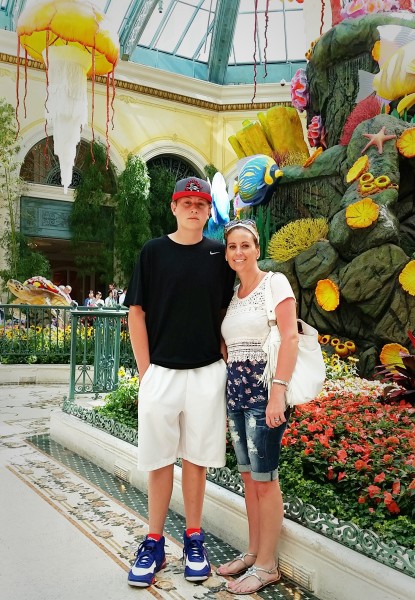 Jennifer also hiked with daughter Devree and son Brevin to the waterfall in the next photo. Her 6’2″ 15-year-old son Beaux stands with her in Las Vegas on another trip, and on the lower right she’s with husband Justin, who was recently inducted into the basketball hall of fame at Southern Utah University. Justin, #22, was the team’s starting point guard in 2001, when they made it to the NCAA March Madness tournament.